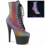 Unleash your bold fashion sense with the Adore-1020REFL Boots, featuring a striking blend of multicolor and black with reflective accents. These ankle boots come with a 7" heel and a 2 3/4" platform, perfect for those who love to stand tall. The lace-up front combined with an inside zip closure offers a harmonious balance of style and practicality. Whether you’re performing on stage or hitting the dance floor, these boots add an electrifying edge to your ensemble. Step out in confidence with the Adore-1020REFL.