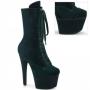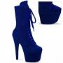 Step into a world of elevated style with the Adore-1045VEL ankle boot. Featuring a striking 7-inch stiletto heel paired with a 2 3/4-inch platform, this boot combines trend-setting design with practicality. The O-Ring lace-up front complements the fully wrapped platform, providing a visually captivating aesthetic, accompanied with navy boot protectors to keep them looking their best.