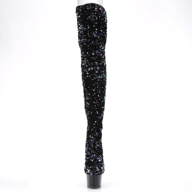 Make a dazzling statement with the Adore-3020 Stretch Sequin Thigh High Boot. These breathtaking boots feature a mesmerizing multi-sequined body that shimmers and sparkles with every move. With a sky-high 7-inch heel and a 2 3/4-inch platform, these boots offer both style and comfort. The convenient inside zip closure provides easy wearability, while the thigh-high design adds allure and drama to any outfit. Whether you're on the dance floor or embraced in a seductive moment, the Adore-3020 will enhance your confidence and leave a lasting impression.