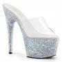 Step into the spotlight with the captivating Adore-701LG Slides. Featuring a dazzling 7-inch stiletto heel and a 2 3/4-inch platform, these slides are adorned with eye-catching holographic glitter that covers the entire platform. The clear and white design adds a touch of elegance, making these the perfect choice for those looking to stand out. Whether you're on stage or enjoying a night out, the Adore-701LG will add a sparkling finish to your ensemble.
