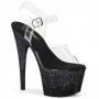 Add some sparkle and shine to your footwear collection with the Adore-708SS Sandal. Boasting a dramatic 7-inch heel and a 2 3/4-inch platform, these sandals are elevated in design with a holographic gradient effect on the platform bottom. The clear and blush straps provide a chic and modern look, making them a fantastic choice for any occasion where you want to stand out. Whether hitting the dance floor or taking the stage, the Adore-708SS Sandal beautifully combines glamour and elegance.