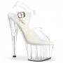 Experience sleek style with the Adore-708VL sandal, designed for those who want to make a chic statement. This striking piece features a daring 7-inch heel and a 2 3/4-inch platform, complemented by smooth, vegan faux leather insoles and a clear aesthetic that enhances its contemporary appeal. Ideal for an array of events where you aim to stand out.