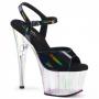 Meet the Adore-709HT Sandal, a blend of style and drama. With a towering 7-inch heel and a 2 3/4-inch platform, these sandals feature a holographic tinted bottom that catches the light with every step. The unique combination of black hologram and clear straps gives them a contemporary, edgy look. Whether you're performing or stepping out on the town, the Adore-709HT is your go-to for adding a touch of sophistication and allure to your outfit.