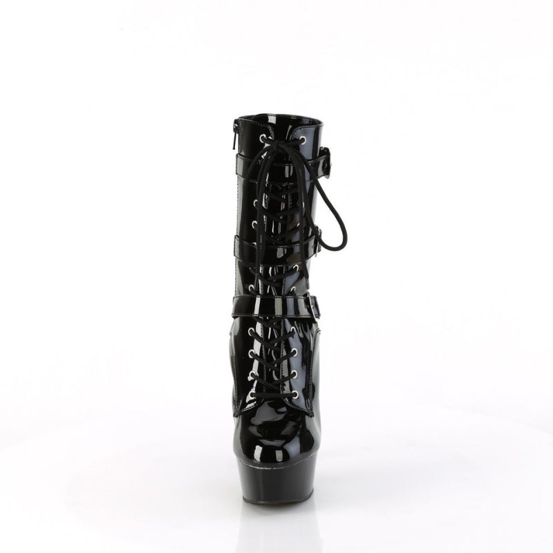 Step into daring style with the Delight-1043 Mid-Calf Boot. Featuring a statuesque 6-inch heel and a sleek 1 3/4-inch platform, this boot is designed for those who love to make an impact. The lace-up front paired with triple buckle straps offers a bold, edgy look, completed with the inner side zip closure. Crafted in a classic black finish, these boots are perfect for adding a touch of drama to any outfit, whether it’s for a night out or a special performance.