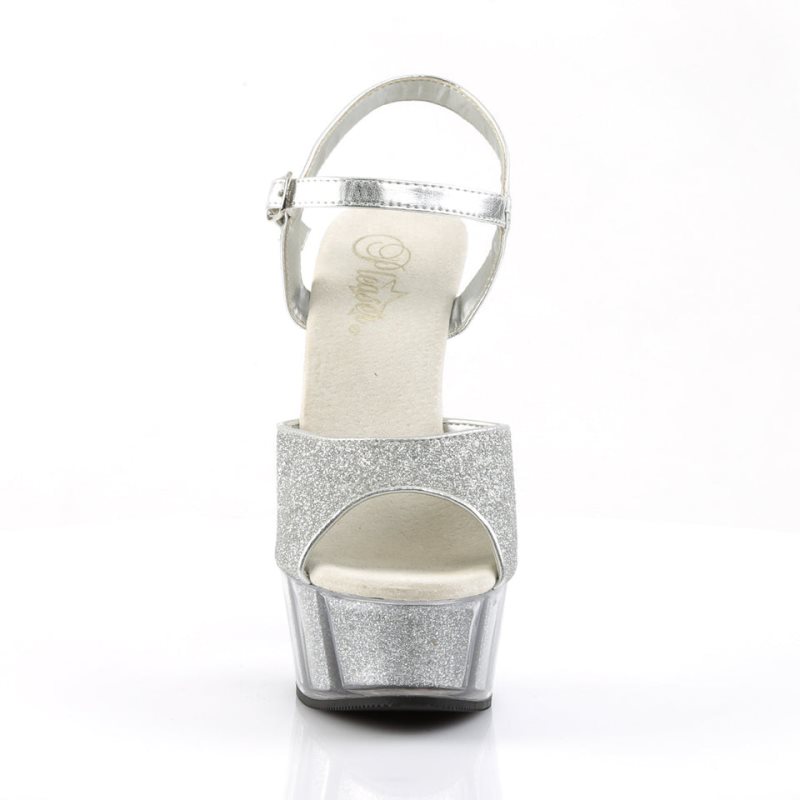 Step into a world of sparkle and shine with the Delight-609-5G sandals. Boasting a dazzling 6-inch stiletto heel paired with a 1 3/4-inch platform, these ankle strap sandals are the epitome of glamour. The mini glitter upper and filled bottom in silver catch the light at every angle, adding a mesmerizing effect to your every move. Perfect for those nights out or special occasions where you want to stand out, the Delight-609-5G will have you feeling like a star.
