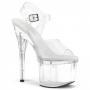 Step into luxury with the Esteem-708 Sandals. Featuring a striking 7-inch heel and a 3-inch platform, these sandals are designed to make a memorable impression. The sleek chrome-plated lower platform and heel add a touch of modern elegance, while the ankle strap provides a stylish finish. With its clear and rose gold combination, the Esteem-708 seamlessly blends sophistication with bold design, perfect for making any outfit stand out.