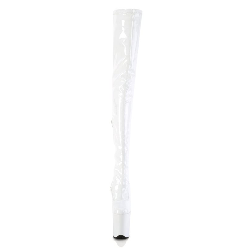 Unleash your inner fashion icon with the Flamingo-4000 boots. Sporting an 8-inch heel and a 4-inch platform, these white stretch crotch boots ooze sophistication and flair. The half-length inner side zip closure adds a practical touch, while the sleek, elongated design makes a dramatic statement. Perfect for performances or adding a wow factor to your ensemble, the Flamingo-4000 promises to elevate your style game to the next level.