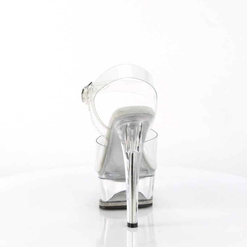 Experience the allure of high fashion with the Gleam-609 Ankle Strap Sandal. Showcasing a bold 6-inch heel and a balanced 1 3/4-inch platform, these sandals are designed for those who love to make a statement. The clear design brings a timeless appeal, effortlessly complementing various styles and ensembles. The ankle strap detailing adds a layer of sophistication, perfect for a memorable night out or an elegant event. Make every step a stylish one with the Gleam-609.