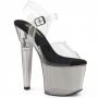Step into a world of enchanting style with the Lovesick-708T Ankle Strap Sandal. This fetching pair features a 7-inch heart-shaped heel coupled with a 3 1/4-inch platform, adding a romantic twist to your look. The clear straps with baby pink accents invite a playful yet elegant vibe, making them a captivating choice for any special occasion or night out.