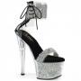 Transform your look with the Sky-327RSI sandal, designed for those who crave a mix of sparkle and sophistication. This sandal features a striking 7-inch heel and a 2 3/4-inch platform for added height and confidence. The close-back ankle cuff with side lacing is adorned with glittering silver multi-rhinestones that extend to the toe strap and the platform bottom. Complemented by a back zip closure, the combination of silver and pink hues ensures you'll stand out in any crowd.