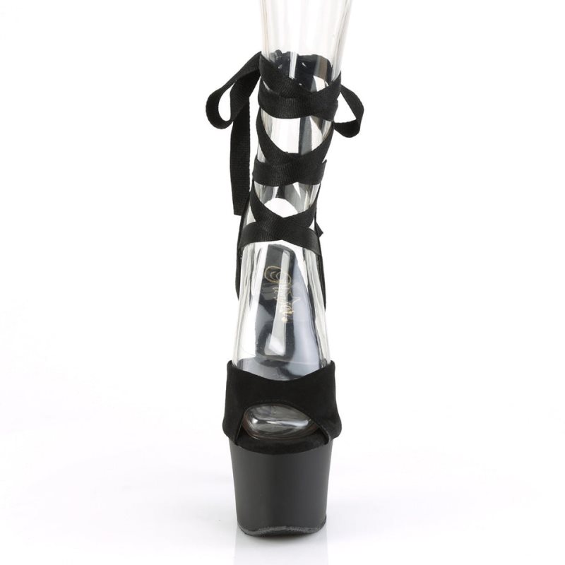 Step into the spotlight with the Sky-334 Criss Cross Ankle Wrap Sandal in striking black suede. Featuring a bold 7-inch heel and a 2 3/4-inch platform, these sandals are designed to give you that extra lift. The elegant criss-cross design wraps around the ankle, adding an edge of sophistication to any outfit. Perfect for turning heads, whether you're on the dance floor or making an entrance at a special event.