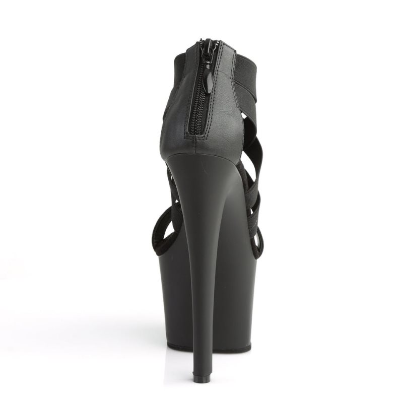 Step into the spotlight with the Sky-369 Double Criss Cross Closed Back Sandal. This sandal features a striking 7-inch heel paired with a 2 3/4-inch platform, designed for those who love a dramatic lift. The double crisscross straps add an alluring touch, while the back zip closure makes them easy to slip on for any occasion. In a sleek black finish, these sandals are a versatile addition to any wardrobe that complements a variety of looks.