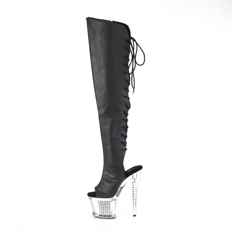 ◇ 3" (76mm) Textured PF Open Toe/Heel Lace-Up Back Over-The-Knee Boot